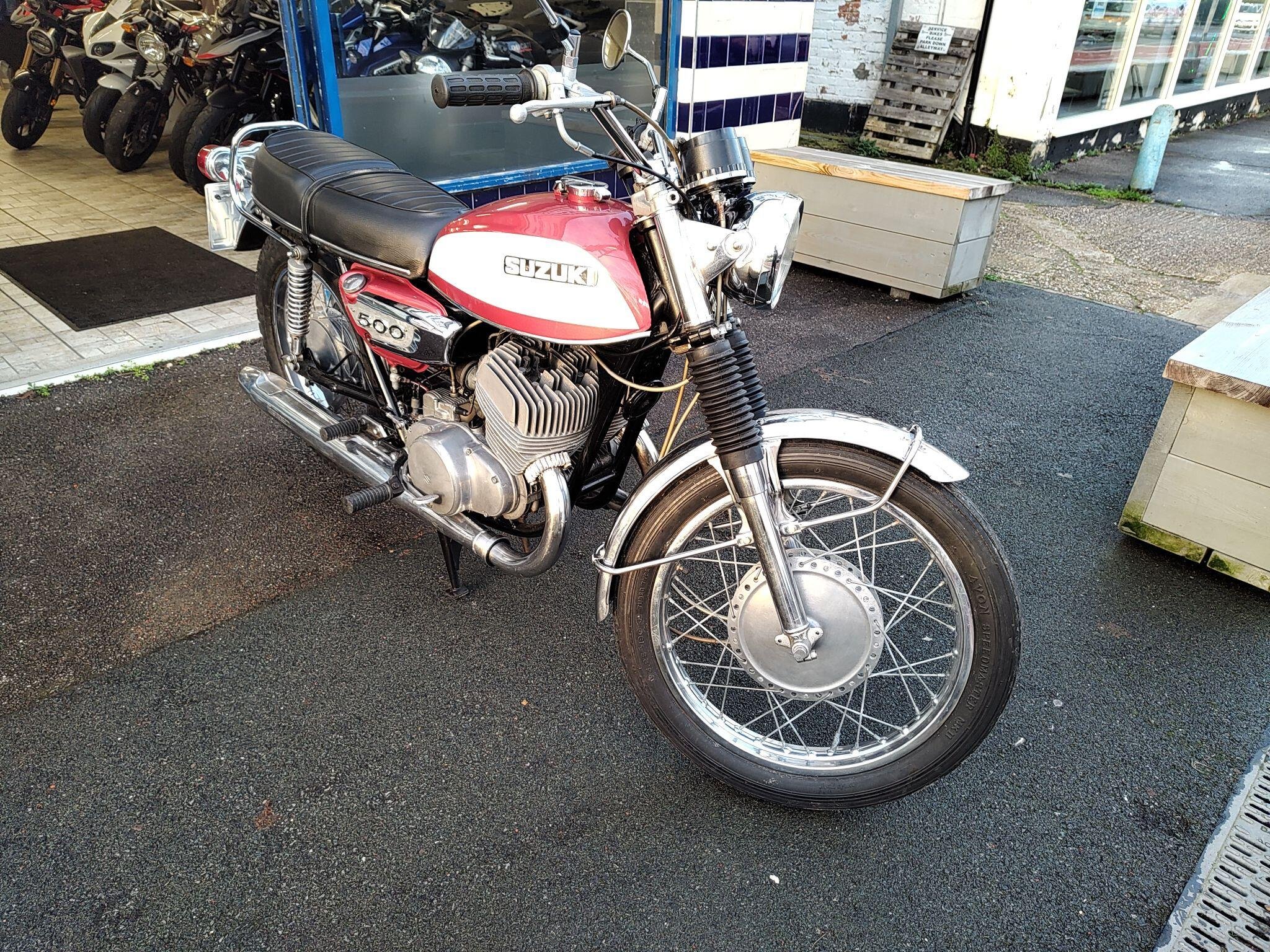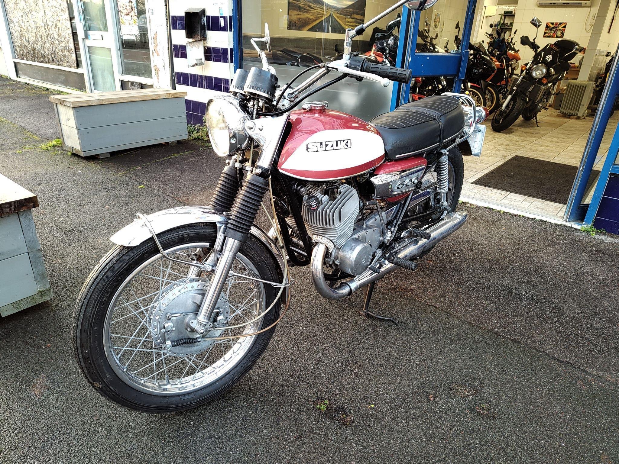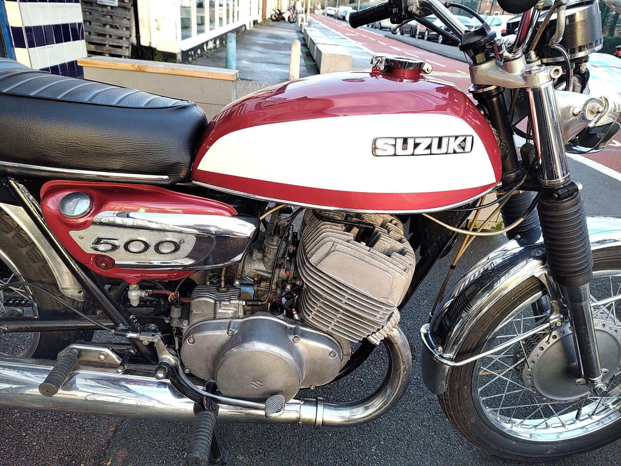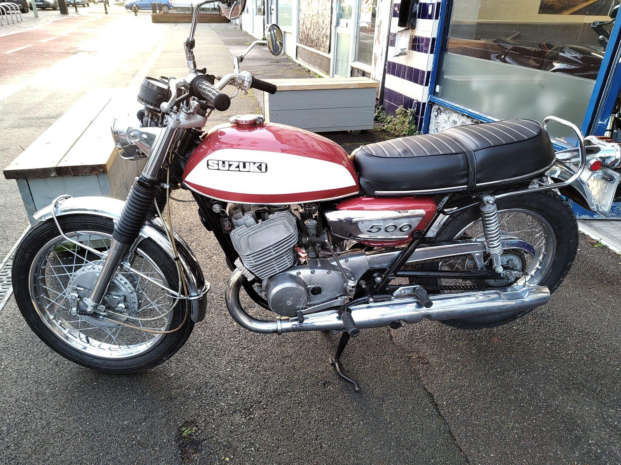 Suzuki T500 in very good condition for year. Speedo is showing just 25000 km. Runs and rides well, registerd as an historic vehicle so no tax or mot.